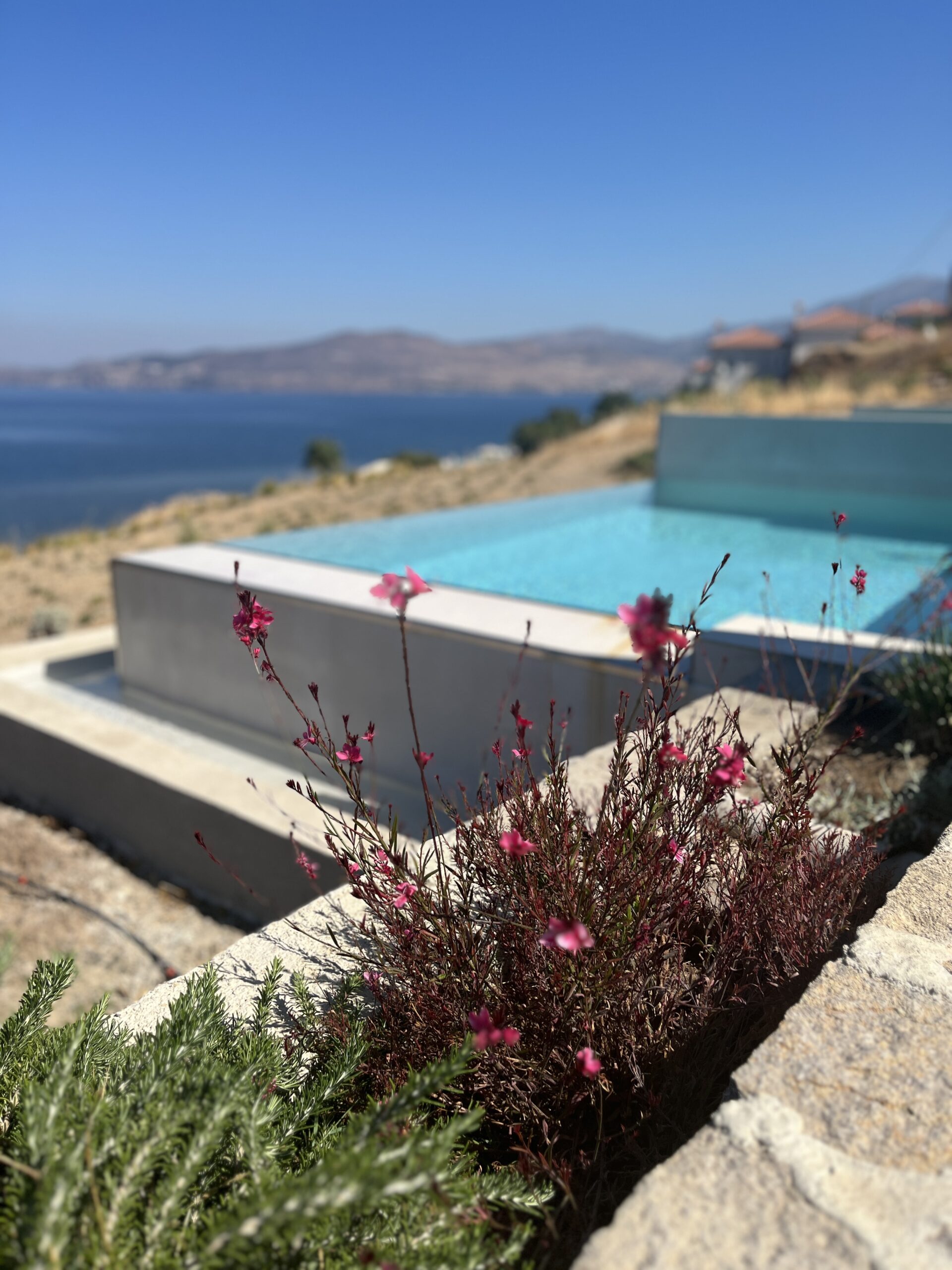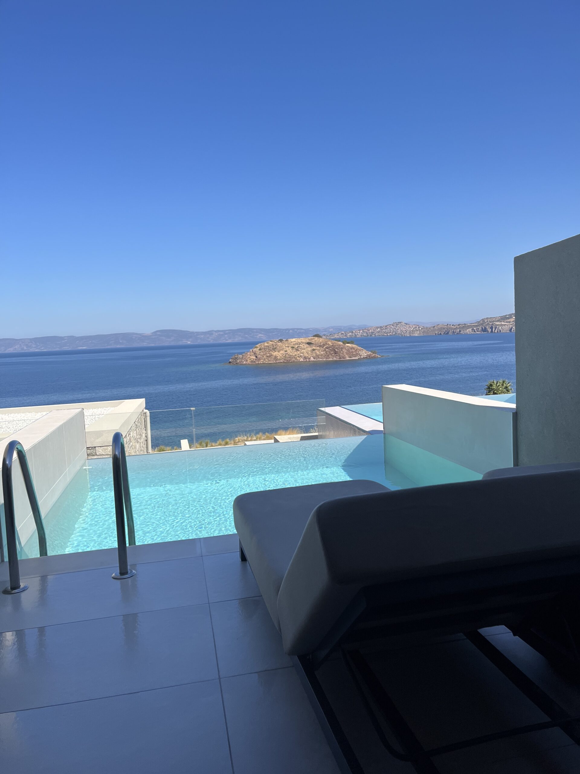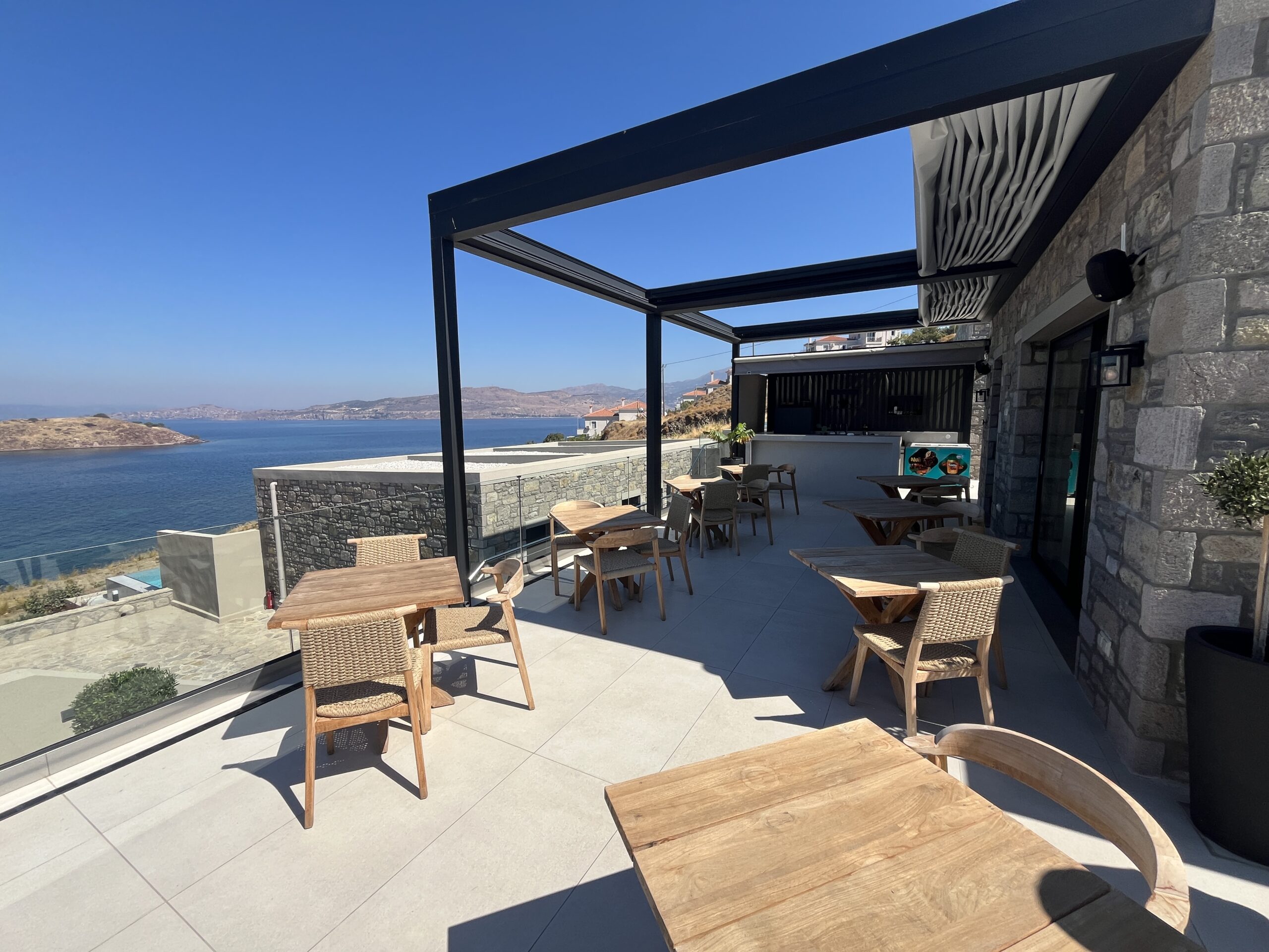 Værelserne ligger på en skråning med en vidunderlig panoramaudsigt over Det Ægæiske Hav. Fra solopgang til solnedgang kan du nyde havets skiftende farver fra din private solterrasse og pool. Udendørsfaciliteterne indbyder til fuldkommen afslapning i fredelige omgivelser, samtidig med at strande, restauranter og lokale landsbyer er let tilgængelige. Ved kompleksets reception er en lille bar med tilhørende terrasseområde.