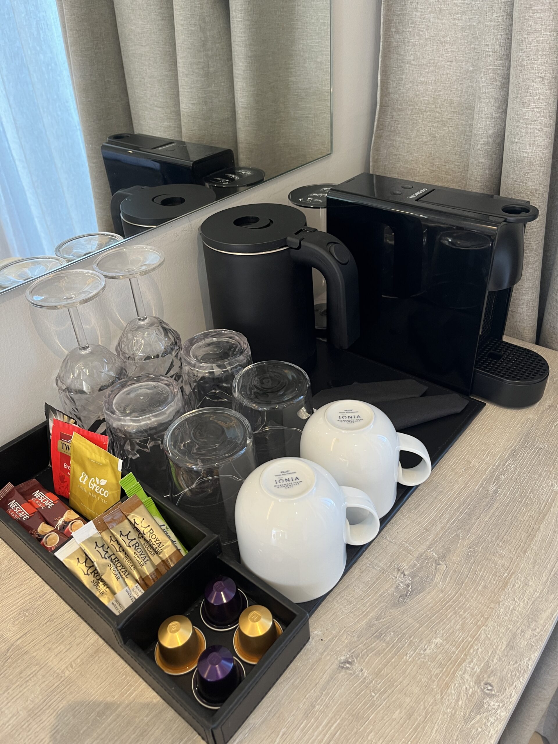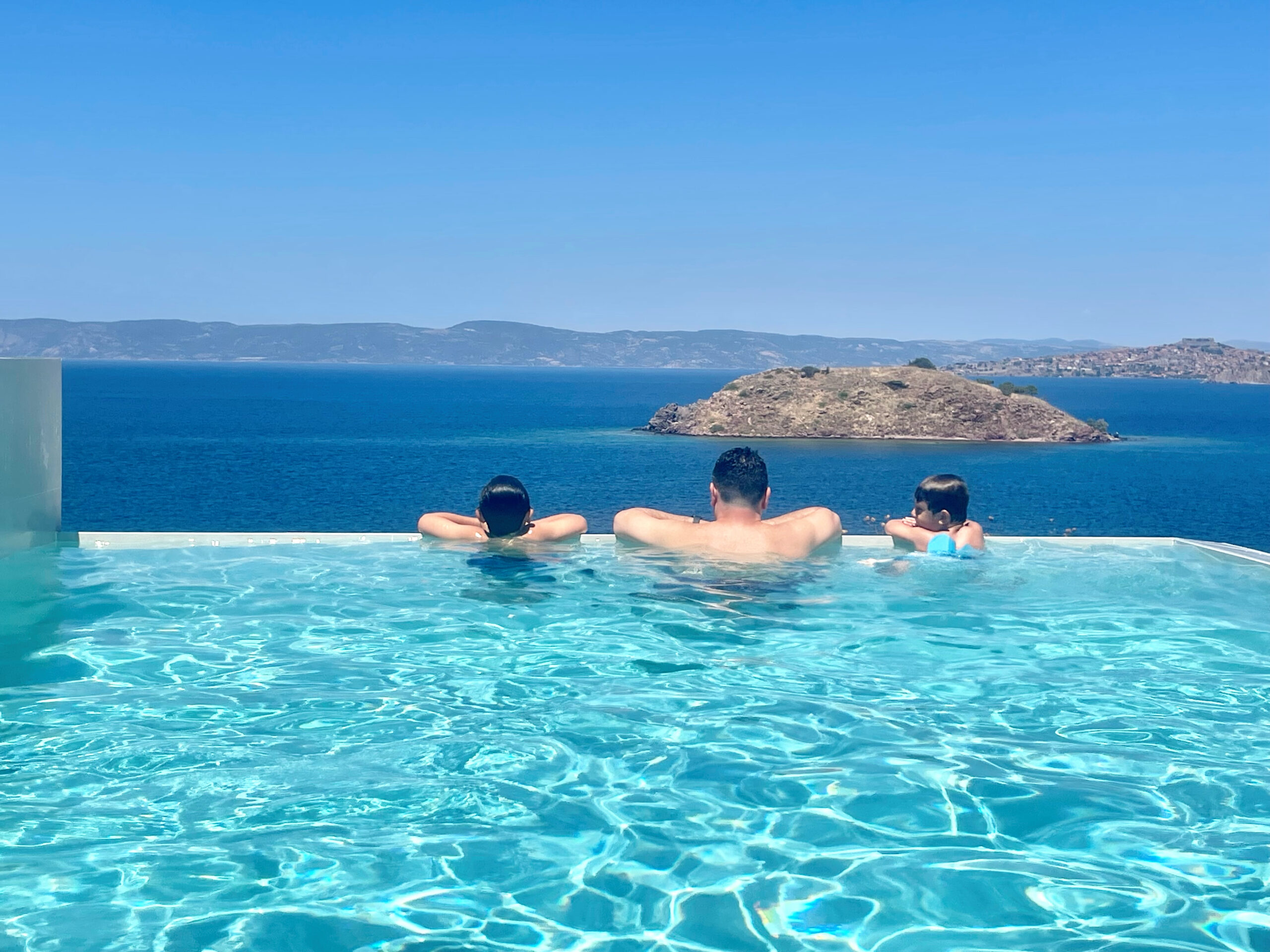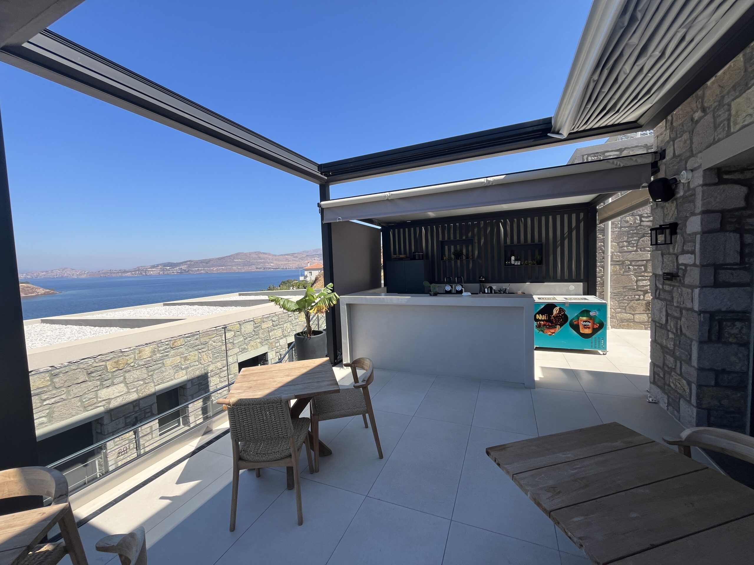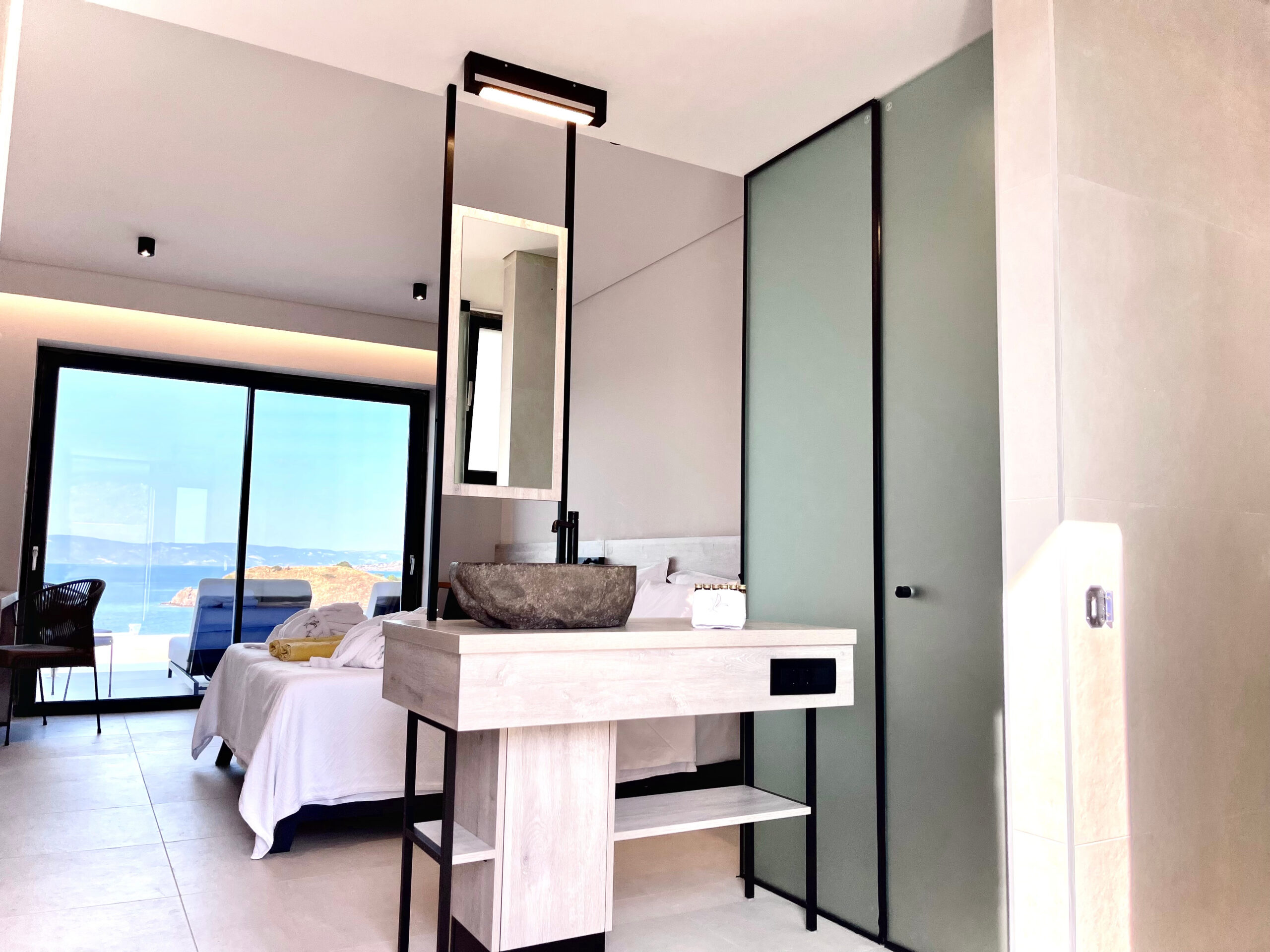 Værelserne ligger på en skråning med en vidunderlig panoramaudsigt over Det Ægæiske Hav. Fra solopgang til solnedgang kan du nyde havets skiftende farver fra din private solterrasse og pool. Udendørsfaciliteterne indbyder til fuldkommen afslapning i fredelige omgivelser, samtidig med at strande, restauranter og lokale landsbyer er let tilgængelige. Ved kompleksets reception er en lille bar med tilhørende terrasseområde.
