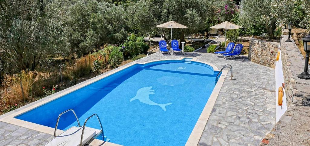 Kerveli Villas består af tre skønne villalejligheder, der er bygget sammen omkring en indbydende pool med solsenge og parasoller, som det naturlige centrum. Her er du omgivet af frodige haver fyldt med farverige bougainvilleaer, roser, cypres- og oliventræer som bare dufter af sommer og sol og med små skyggefulde siddeområder til en lille pause.