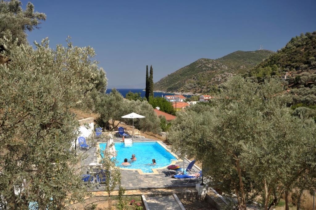 Villalejlighederne har et søsterhotel fem minutters gang derfra med restaurant, som serverer morgenmad og aftensmad fra hyggelige terrasser med udsigt over havet og kysten. Ved poolen hér er der desuden en taverna, hvor der serveres frokostretter, is og kaffe, samt en poolbar der byder på cocktails og ouzo under månens skær. Hotellets minibus kører til Samos by, og kan også hente ved villalejlighederne, hvis blot det bestilles dagen før. Og sidst men ikke mindst, kan der bestilles morgenlevering af friskbagt brød lige til døren.