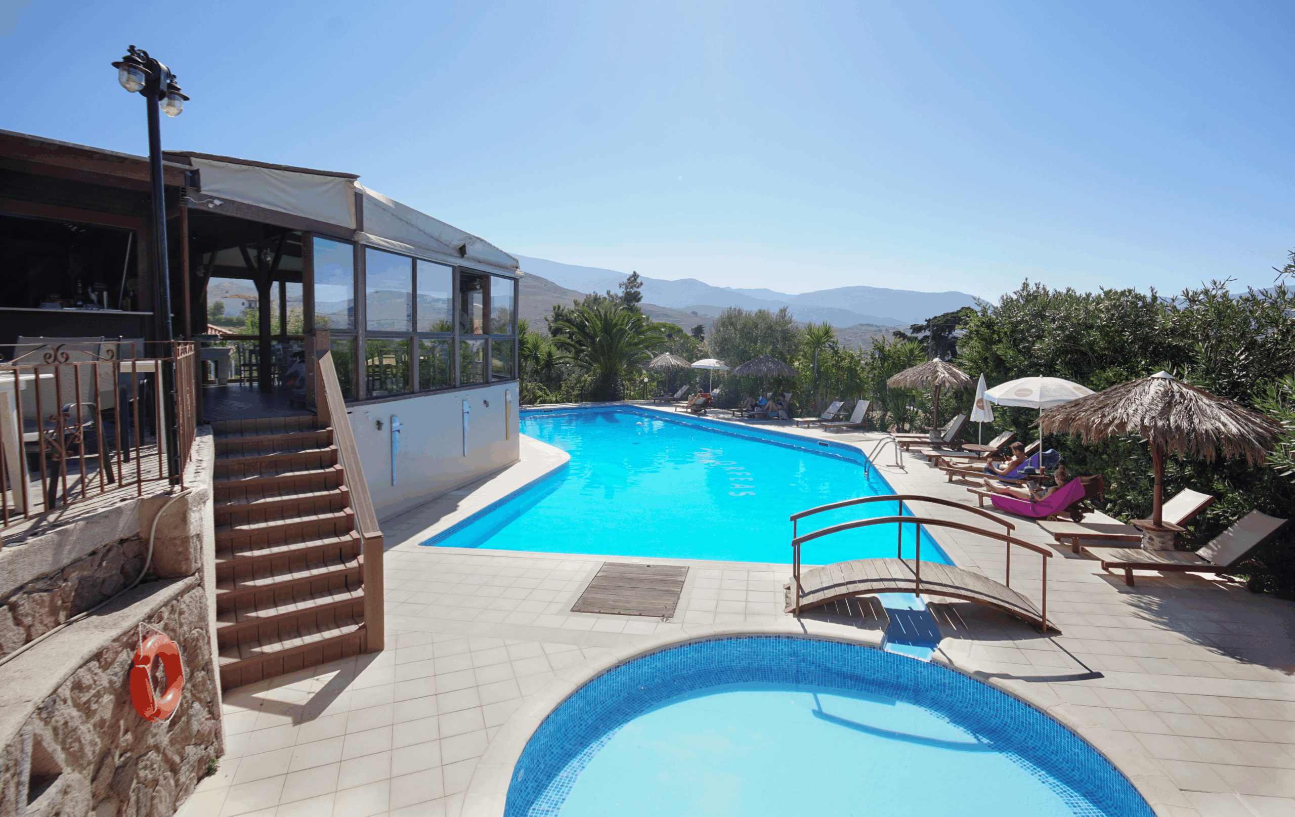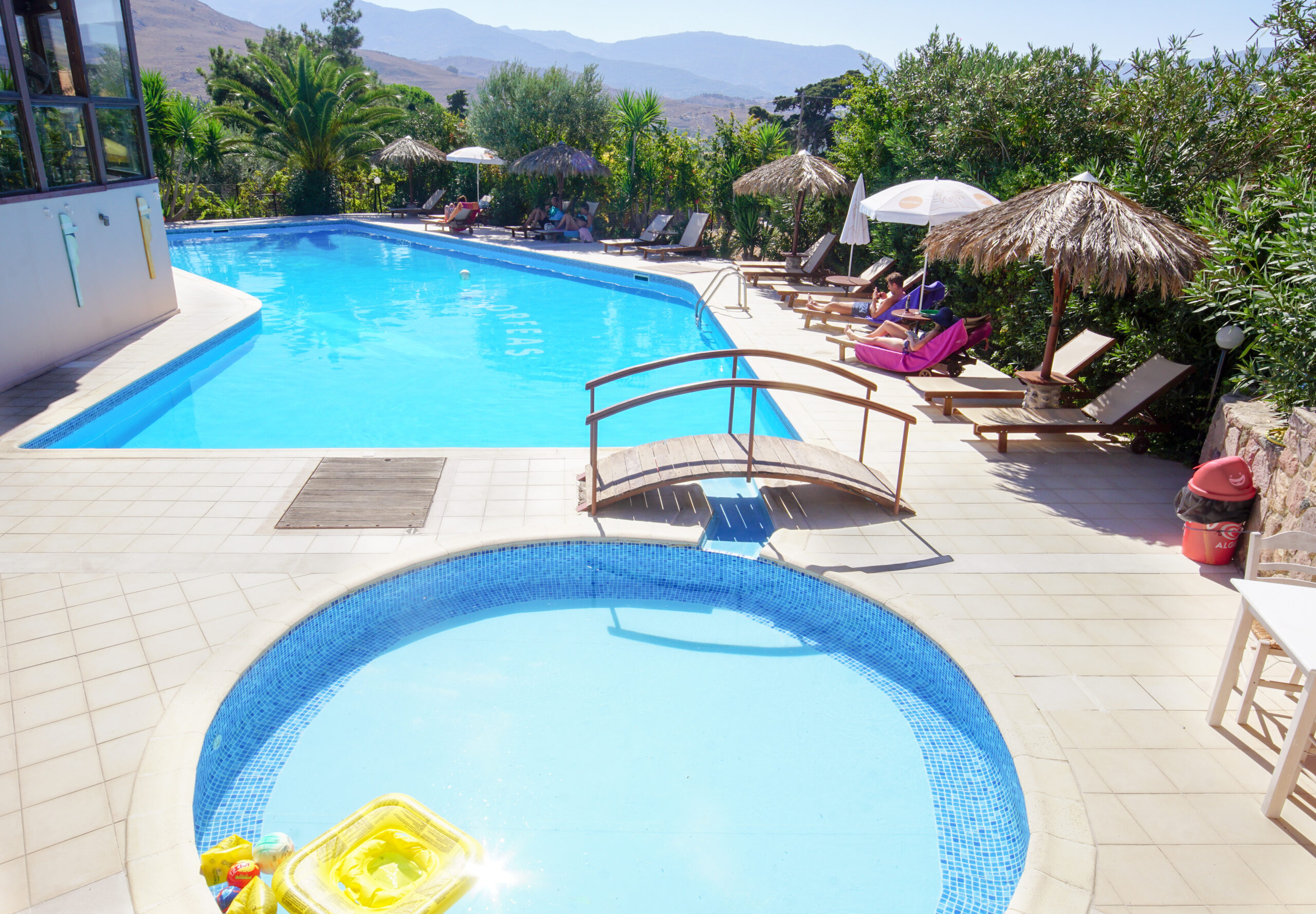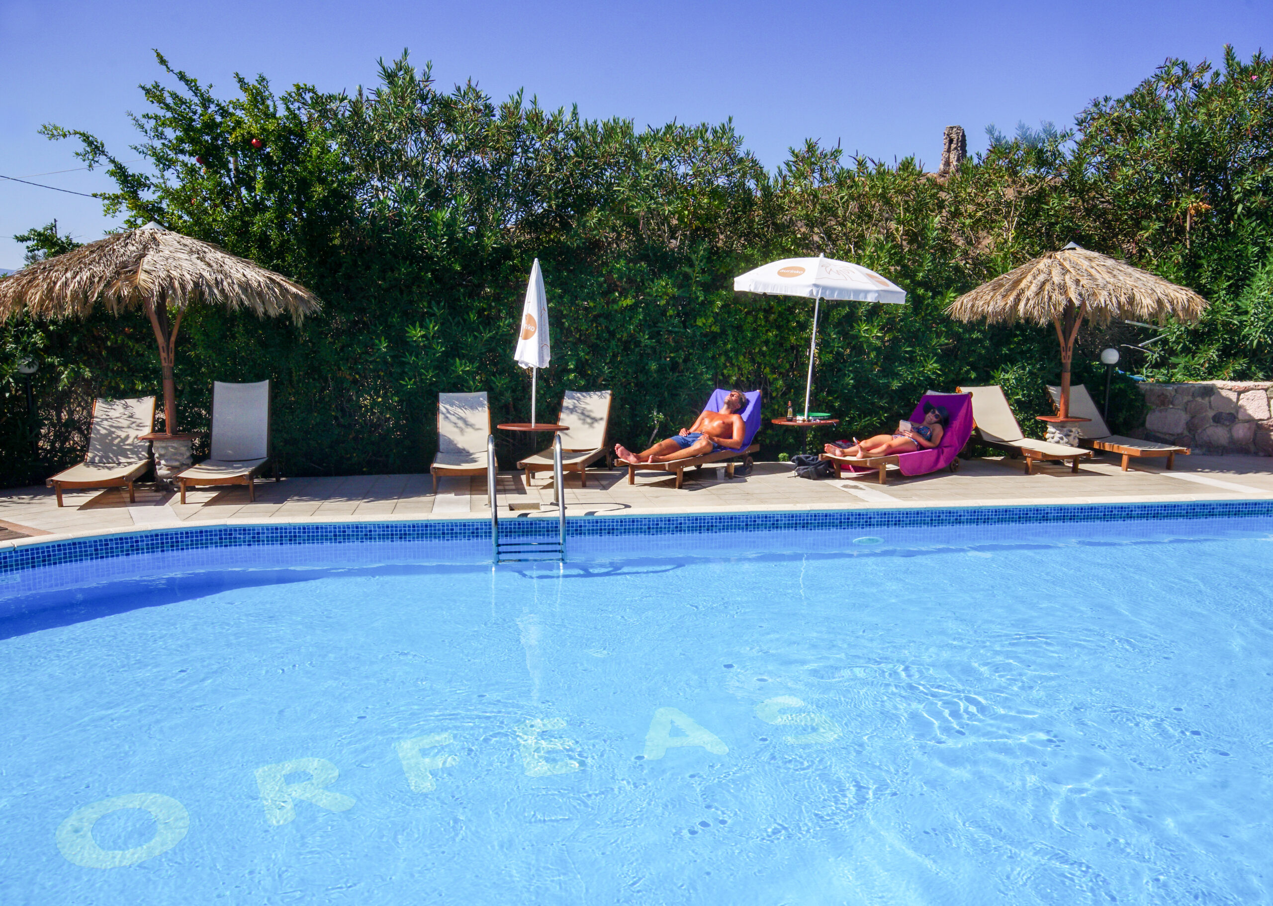 Olga Orfeas byder på en stor, indbydende pool omgivet af smukke haver, hvor du kan slappe af under palmer og grønne træer. Lige ved poolen er der en hyggelig morgenmadsrestaurant, hvor du nyde en dejlig morgenmad, som allerede er inkluderet i opholdet.